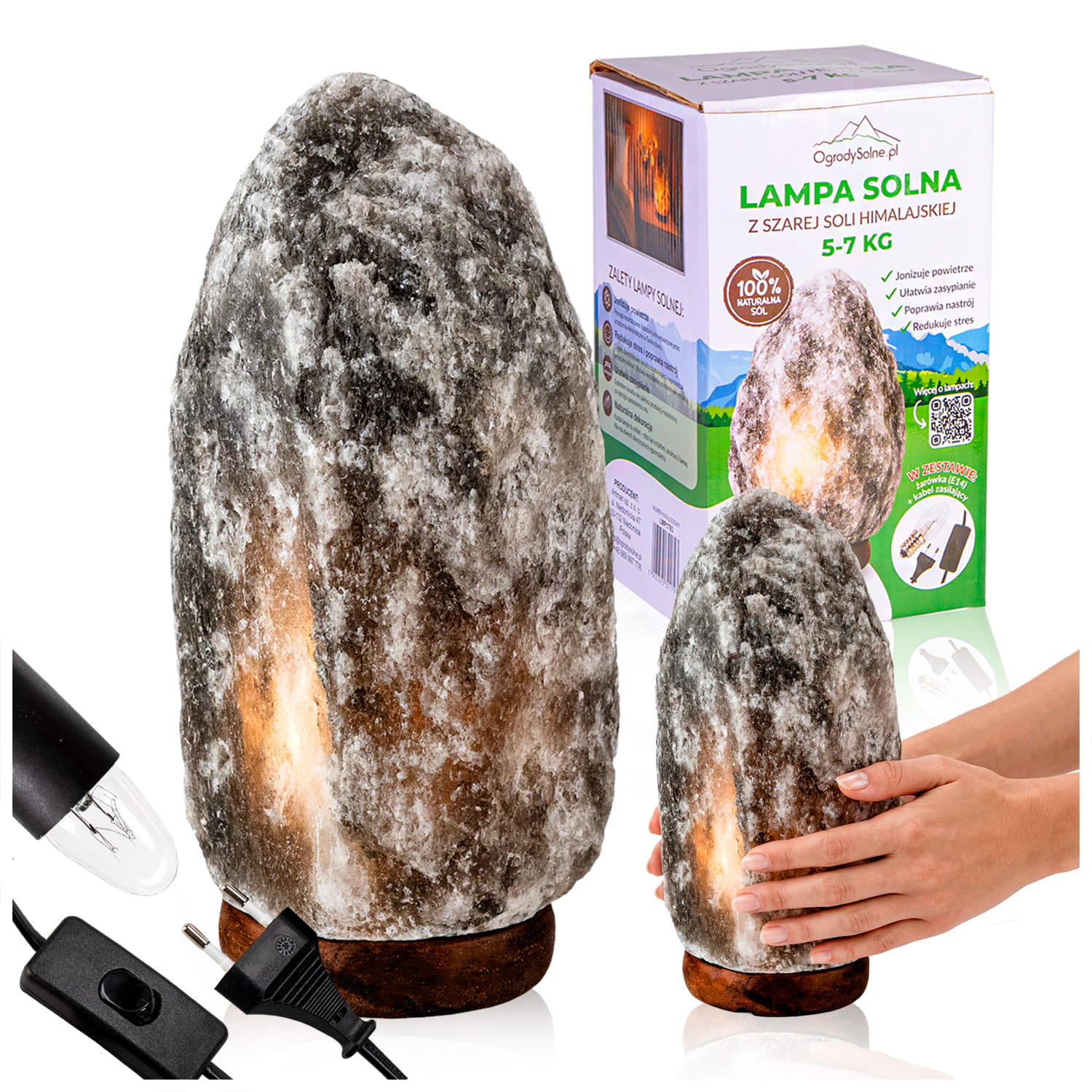 Lampa solna 5-7 kg himalajska SZARA naturalna jonizator powietrza