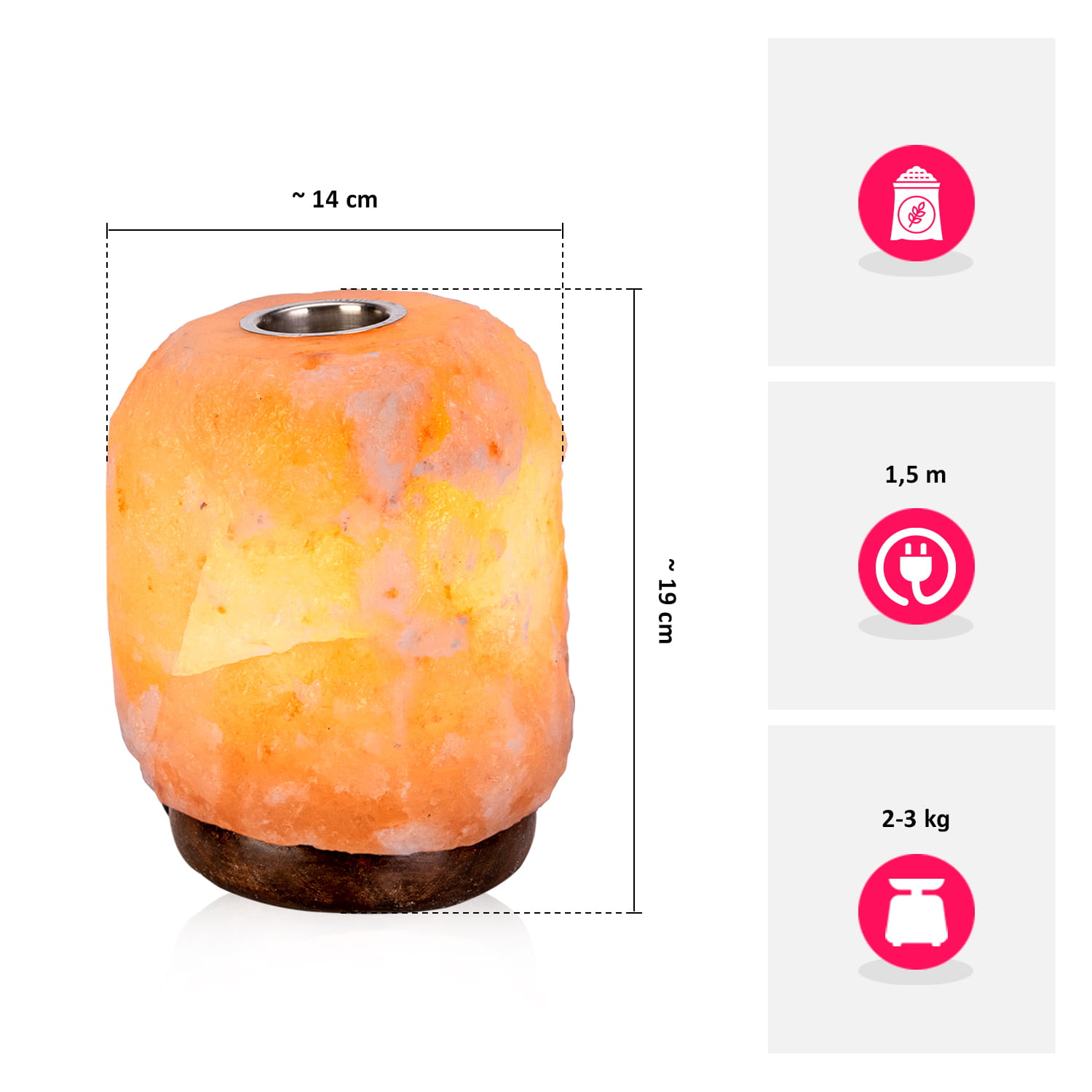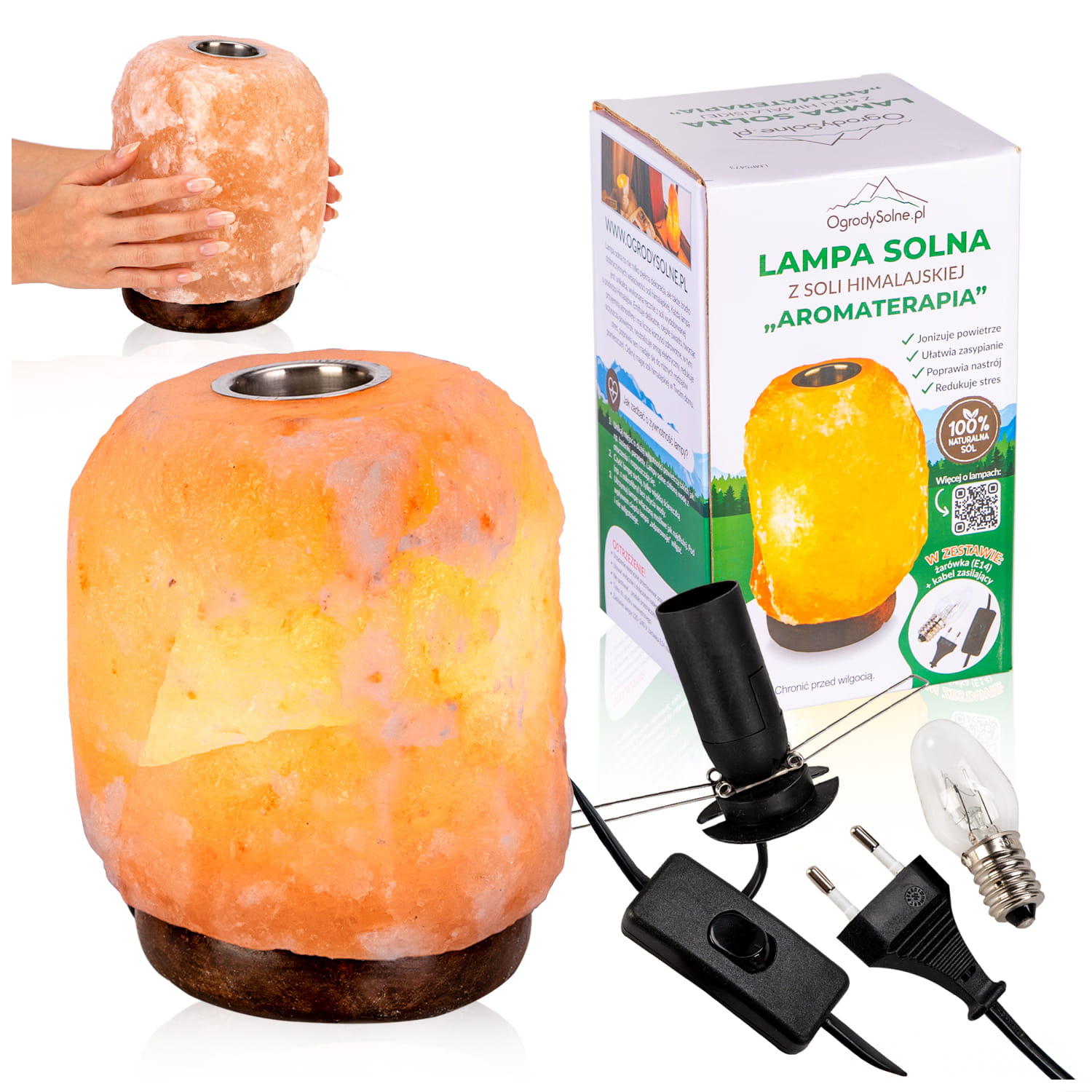 - umieszczony w górnej części solnego kryształu otwór na OLEJEK ZAPACHOWY umożliwia rozprzestrzenianie się pięknego aromatu!